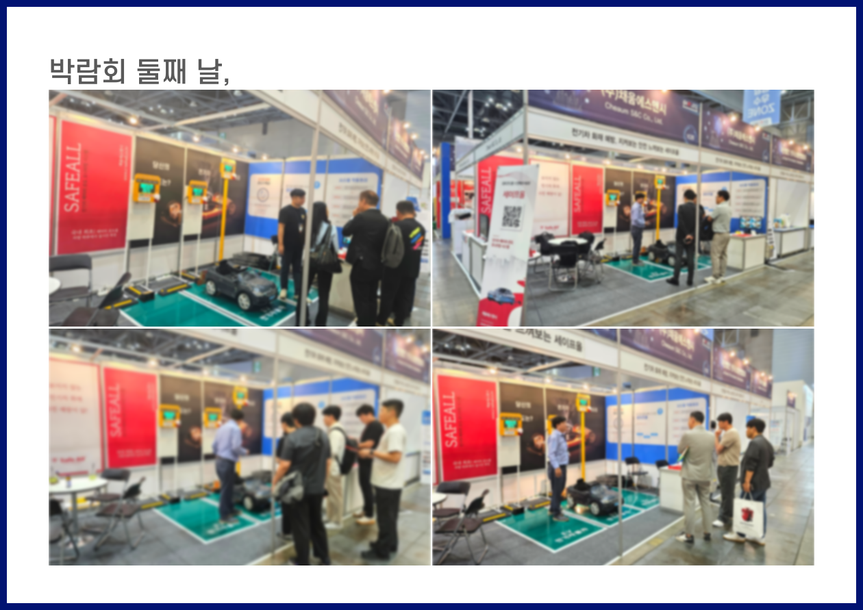 특히, 행사 첫날부터 많은 참관객들이 방문하여 전시장 곳곳이 활기를 띠었으며, 안전 산업에 대한 사회적 관심과 기대가 점점 높아지고 있음을 확인할 수 있었습니다. (주)채움에스앤시는 이번 전시회를 통해 세이프올 부스를 운영하며, 전기차 화재예방 시스템의 필요성과 효과를 직접 체험할 수 있는 기회를 제공하였습니다. 다양한 관계자 및 관람객들과의 소통을 통해 세이프올의 가치와 비전을 널리 알릴 수 있는 뜻깊은 자리가 되었습니다.